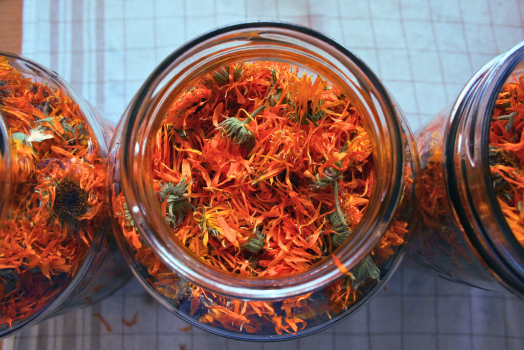 Tout au long de leur croissance, nous veillons à un entretien soigné et une récolte délicate à maturité. Après un séchage strictement contrôlé, nos plantes sont transformées en infusions, macérats huileux, vapeurs florales, et autres produits 100% naturels.